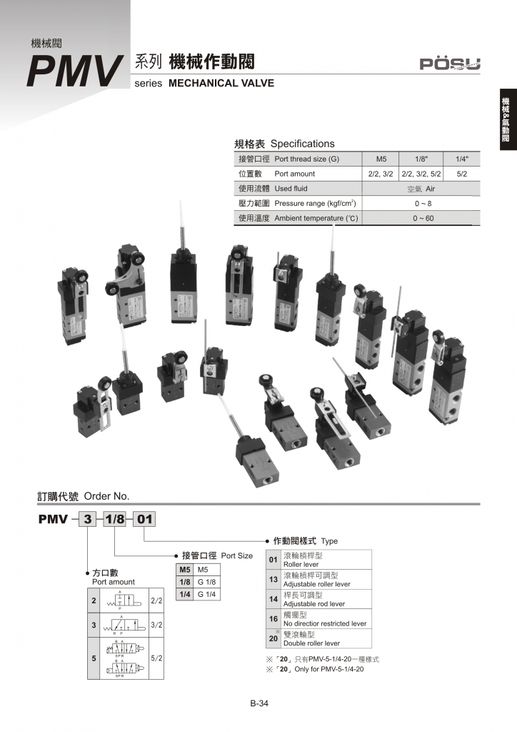 POSU機(jī)械作動(dòng)閥型號(hào)參考:PMV-5-M5-16 , PMV-5-M5-14 , PMV-5-M5-13 , PMV-5-M5-01 , PMV-5-1/8-16 , PMV-5-1/8-14 , PMV-5-1/8-13 , PMV-5-1/8-01 , PMV-5-1/4-20 , PMV-5-1/4-16 , PMV-5-1/4-14 , PMV-5-1/4-13 , PMV-5-1/4-01 , PMV-3-M5-16 , PMV-3-M5-14 , PMV-3-M5-13 , PMV-3-M5-01 , PMV-3-1/8-16 , PMV-3-1/8-14 , PMV-3-1/8-13 , PMV-3-1/8-01 , PMV-3-1/4-16 , PMV-3-1/4-14 , PMV-3-1/4-13 , PMV-3-1/4-01 , PMV-2-M5-16 , PMV-2-M5-14 , PMV-2-M5-13 , PMV-2-M5-01 , PMV-2-1/8-16 , PMV-2-1/8-14 , PMV-2-1/8-13 , PMV-2-1/8-01 , PMV-2-1/4-16 , PMV-2-1/4-14 , PMV-2-1/4-13 , PMV-2-1/4-01
