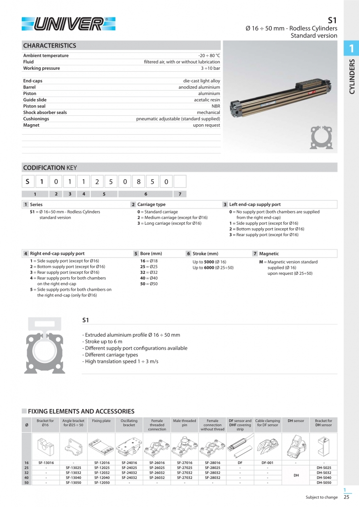 SERIES S1 Rodless cylinders ? 16-50 mm