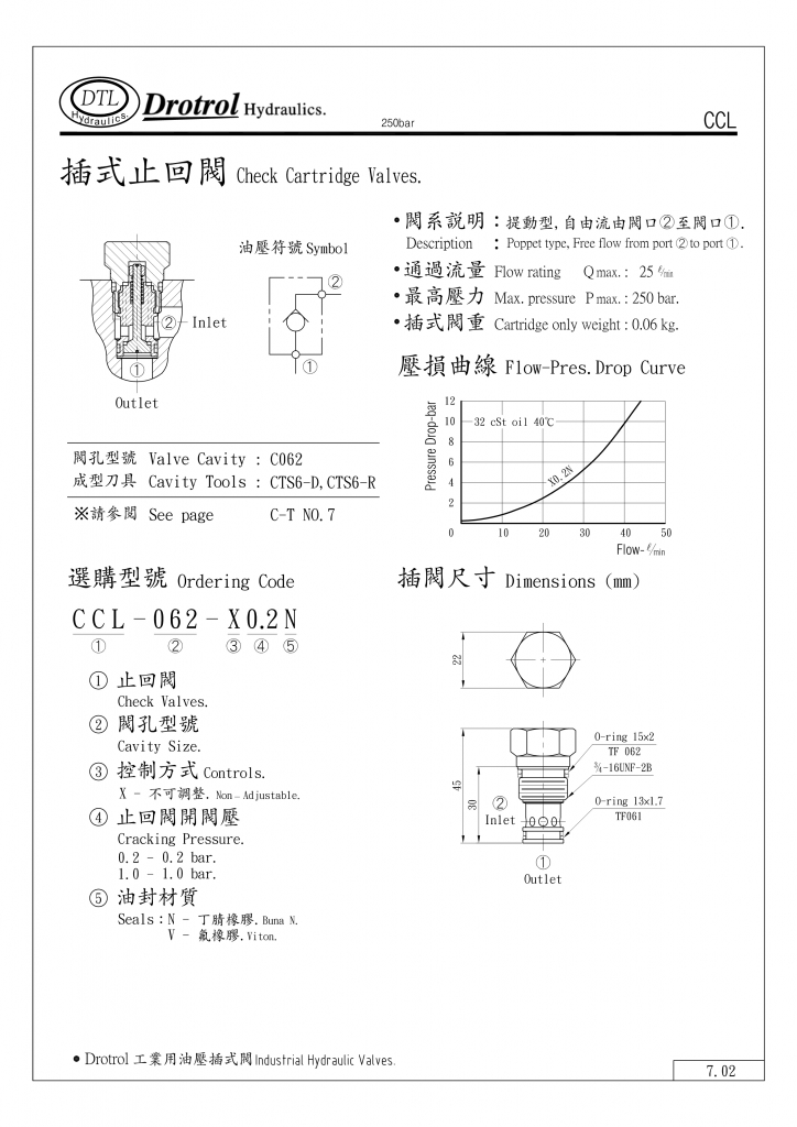 DTL插式止回閥常規(guī)型號參考:CCL-062-X0.2N , CCL-062-X1.0N , CCL-062-X0.2V , CCL-062-X1.0VDTL插式止回閥常規(guī)型號參考:CCL-082-X0.2N , CCL-082-X0.2V , CCL-082-X1.0N , CCL-082-X1.0V ,DTL插式止回閥常規(guī)型號參考:CCL-092-X0.2N , CCL-092-X0.2V , CCL-092-X2.0N , CCL-092-X2.0V