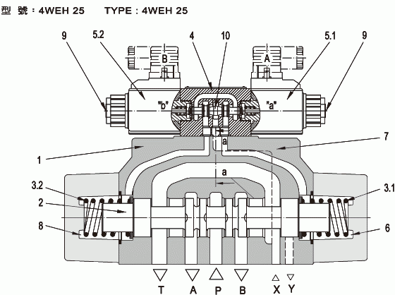 • 當(dāng)先導(dǎo)閥操作,施壓於主閥芯的一端,移動(dòng)閥芯至操作位置。根據(jù)操作方向,閥開(kāi)啟,液流由P至A和B至T或P至B和A至T。
