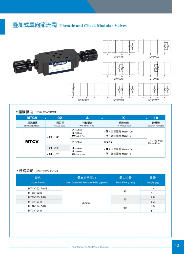 ASHUN疊加式單向節(jié)流閥常規(guī)型號參考:MTCV-02A-X-10 , MTCV-02A-Y-10 , MTCV-02B-X-10 , MTCV-02B-Y-10 , MTCV-02P-10 , MTCV-02W-X-10 , MTCV-02W-Y-10 , MTCV-03A-X-10 , MTCV-03A-Y-10 , MTCV-03B-X-10 , MTCV-03B-Y-10 , MTCV-03W-X-10 , MTCV-03W-Y-10 , MTCV-04A-X-10 , MTCV-04A-Y-10 , MTCV-04B-X-10 , MTCV-04B-Y-10 , MTCV-04W-X-10 , MTCV-04W-Y-10
