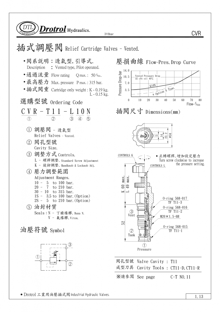 DTL插式調(diào)壓閥部分常規(guī)型號(hào)參考:CVR-T02-K10N , CVR-T02-K10V , CVR-T02-K1SN , CVR-T02-K1SV , CVR-T02-K20N , CVR-T02-K20V , CVR-T02-K2SN , CVR-T02-K2SV , CVR-T02-K30N , CVR-T02-K30V , CVR-T02-L10N , CVR-T02-L10V , CVR-T02-L1SN , CVR-T02-L1SV , CVR-T02-L20N , CVR-T02-L20V , CVR-T02-L2SN , CVR-T02-L2SV , CVR-T02-L30N , CVR-T02-L30V ,