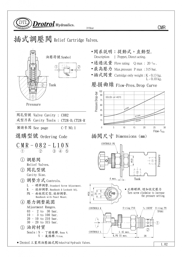 DTL插式調(diào)壓閥部分常規(guī)型號參考:CMR-082-K03N , CMR-082-K03V , CMR-082-K10N , CMR-082-K10V , CMR-082-K20N , CMR-082-K20V , CMR-082-K30N , CMR-082-K30V , CMR-082-L03N , CMR-082-L03V , CMR-082-L10N , CMR-082-L10V , CMR-082-L20N , CMR-082-L20V , CMR-082-L30N , CMR-082-L30V , CMR-082-PK03N , CMR-082-PK03V , CMR-082-PK10N , CMR-082-PK10V , CMR-082-PK20N , CMR-082-PK20V , CMR-082-PK30N , CMR-082-PK30V , DTL插式調(diào)壓閥部分常規(guī)型號參考:CMR-092-J10N , CMR-092-J10V , CMR-092-J20N , CMR-092-J20V , CMR-092-J40N , CMR-092-J40V , CMR-092-KW10N , CMR-092-KW10V , CMR-092-KW20N , CMR-092-KW20V , CMR-092-KW40N , CMR-092-KW40V ,