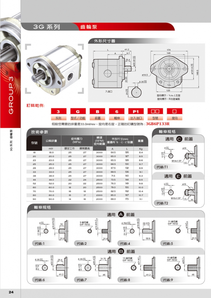 HONOR鈺盟齒輪泵 3G系列齒輪泵