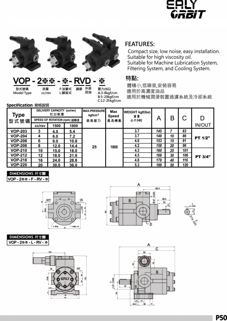 EALY弋力液壓油泵 VOP系列潤(rùn)滑泵