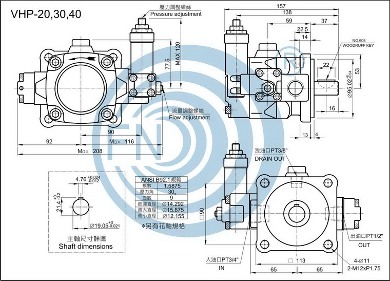 ◆本系列中壓可變?nèi)萘枯喨~幫浦,係針對油壓迴路所需要中壓力而設(shè)計,利用引導(dǎo)壓有效的控制總壓的昇降,故能提高迴路效率,降低騷音,降低油溫。適用於各類油壓機械或?qū)S脵C。另有9齒花鍵軸及專用配套電機。