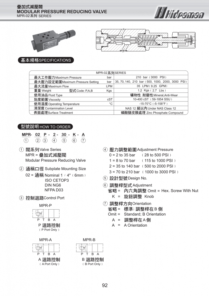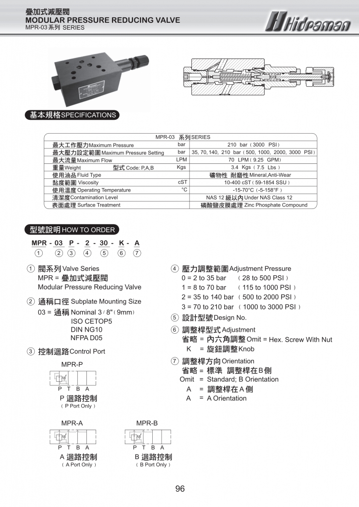 HIDRAMAN海德門疊加閥 MRP-02,03系列疊加式減壓閥
