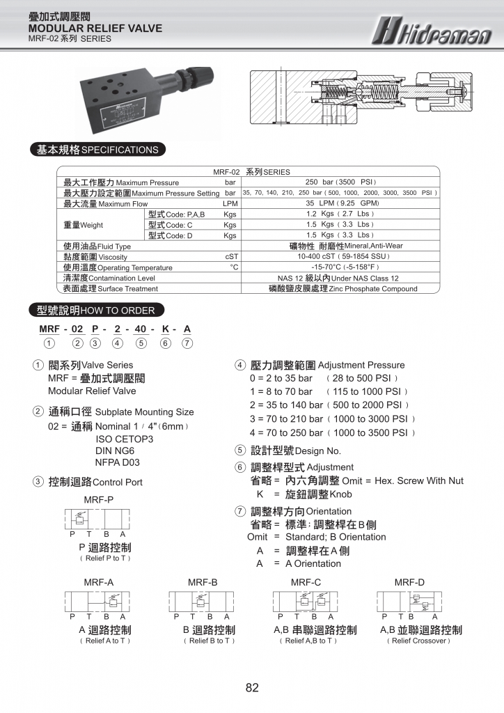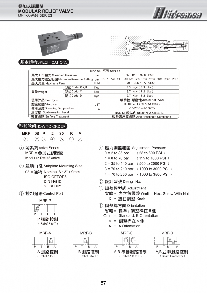 HIDRAMAN海德門(mén)疊加閥 MRF-02,03系列疊加式調(diào)壓閥