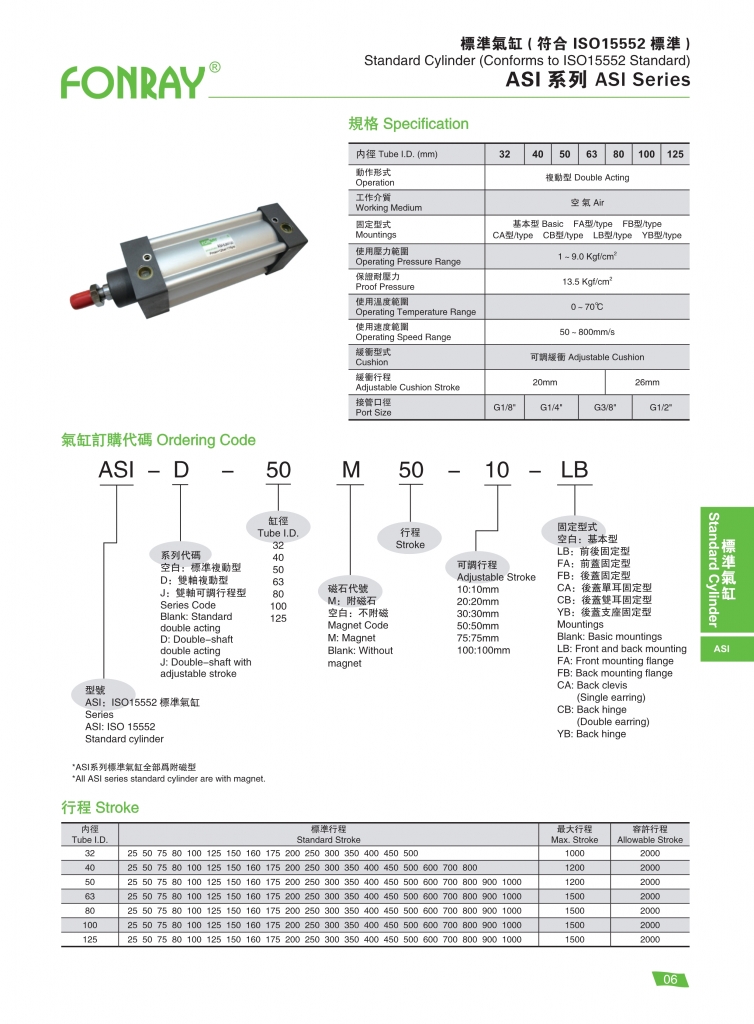 | ASI 無繫桿汽缸系列 ISO-6431 |