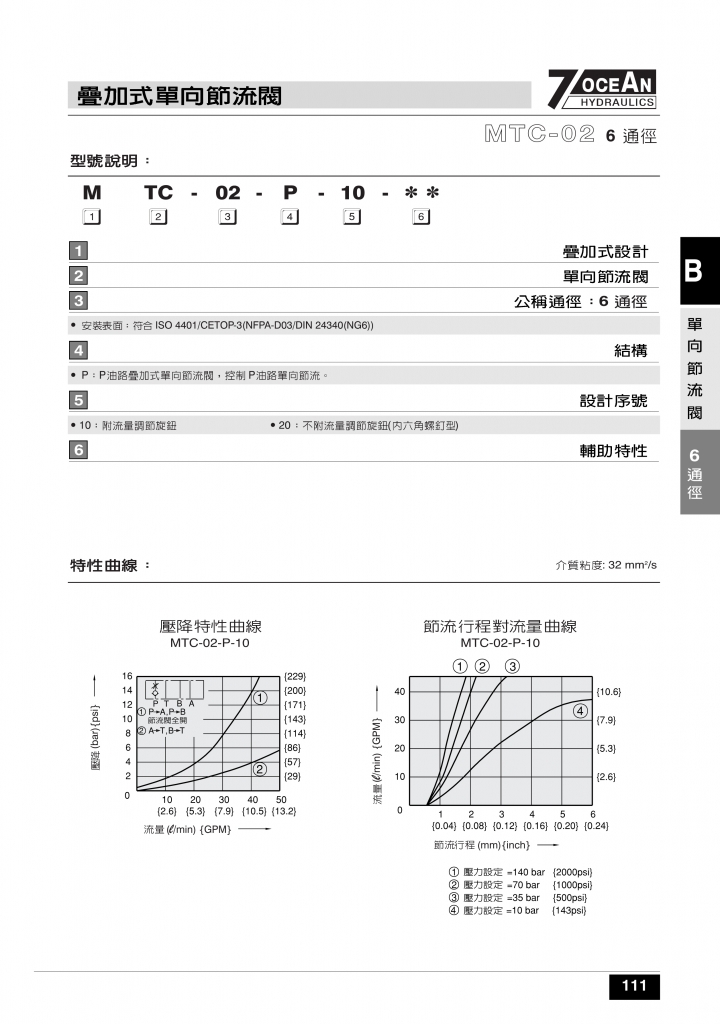 7OCEAN七洋疊加閥 MTV-02,03系列疊加式節(jié)流閥-SevenOcean七洋