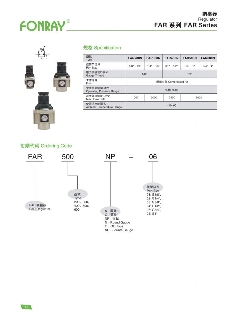 | FAR200N-01 、 02 | 1/8 ″ 、 1/4 ″ | 1000 | 0.15 ~ 0.85 |
