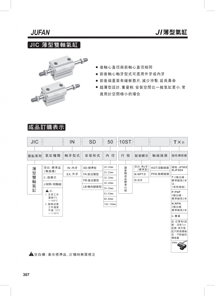 JIA薄型復(fù)動氣缸JIB薄型雙軸氣缸JIC薄型雙軸氣缸 JID雙軸薄型前進可調(diào)氣缸JIL薄型長行程復(fù)動氣缸