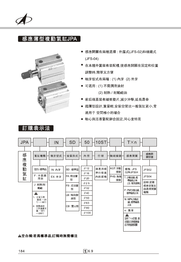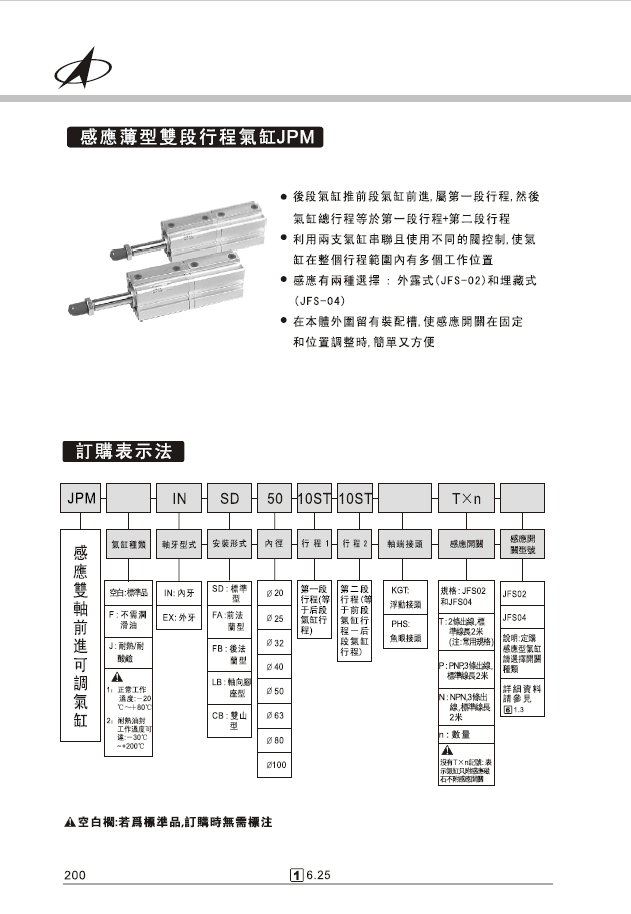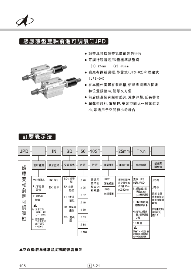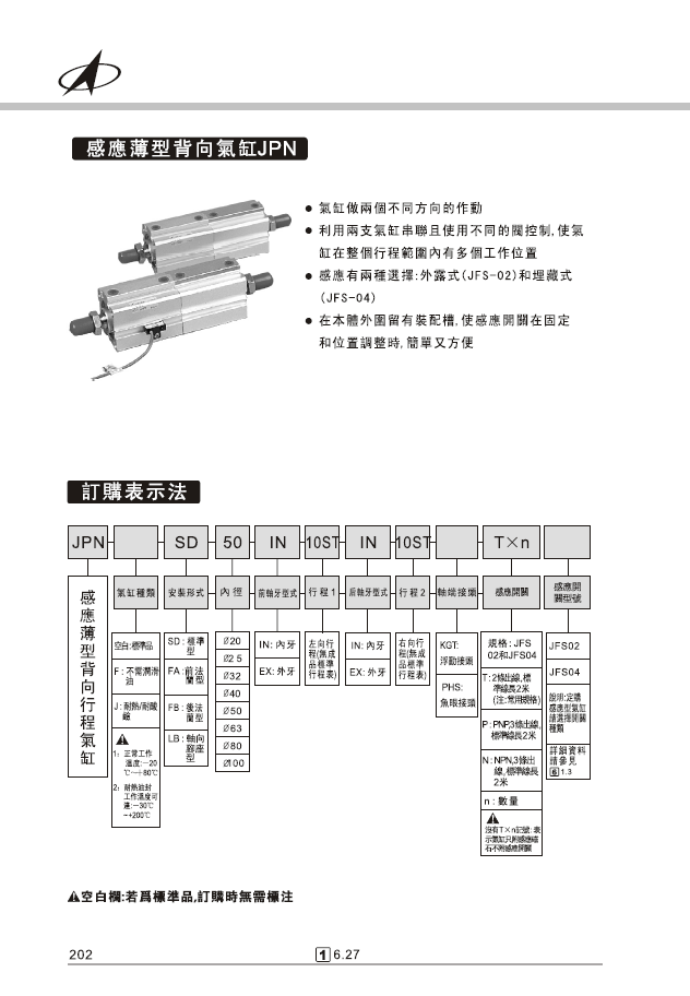 JPA感應(yīng)薄型復(fù)動氣缸JPB感應(yīng)薄型單動氣缸JPC感應(yīng)薄型雙軸氣缸JPD感應(yīng)薄型雙軸前進可調(diào)氣缸JPL感應(yīng)薄型長行程復(fù)動氣缸JPM感應(yīng)薄型雙端行程氣缸JPN感應(yīng)薄型背向氣缸