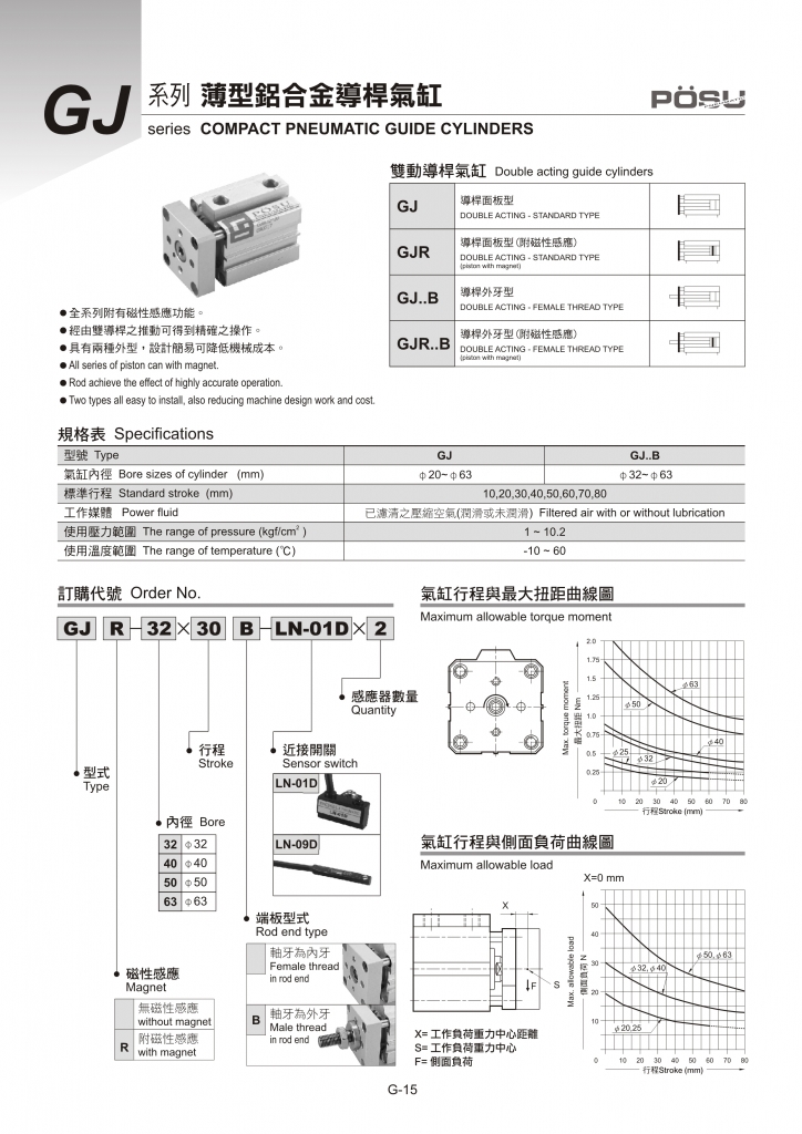 | GJR..B | 導(dǎo)桿外牙型 (附磁性感應(yīng)) |