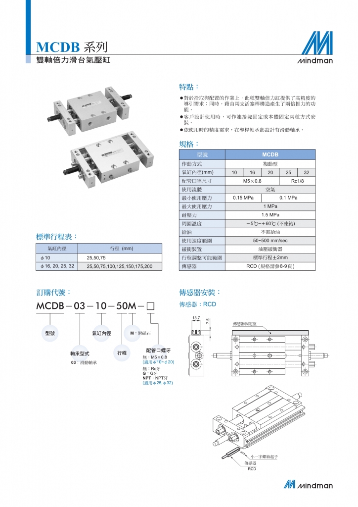 對(duì)於拾取與配置的作業(yè)上,此種雙軸倍力缸提供了高精度的導(dǎo)引需求;同時(shí),藉由兩支活塞桿構(gòu)造產(chǎn)生了兩倍推力的功能。